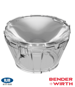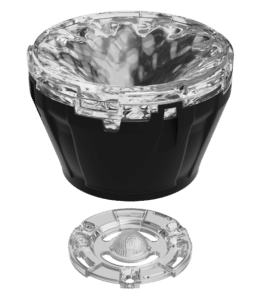 HADAR70M is a Ø 70 mm Medium beam PMMA collimator. Diamond turned optic provides industrys highest efficiency and efficacy with smooth cut-off and extremely low surface brightness. HADAR70M is compatible with variety of snap-on window accessories (HADAR70W*). HADAR70N has typical efficiency of 92 % and supporting single color and tunable white COBs from 3 mm 23 mm LES, with better 3rd party connector support.