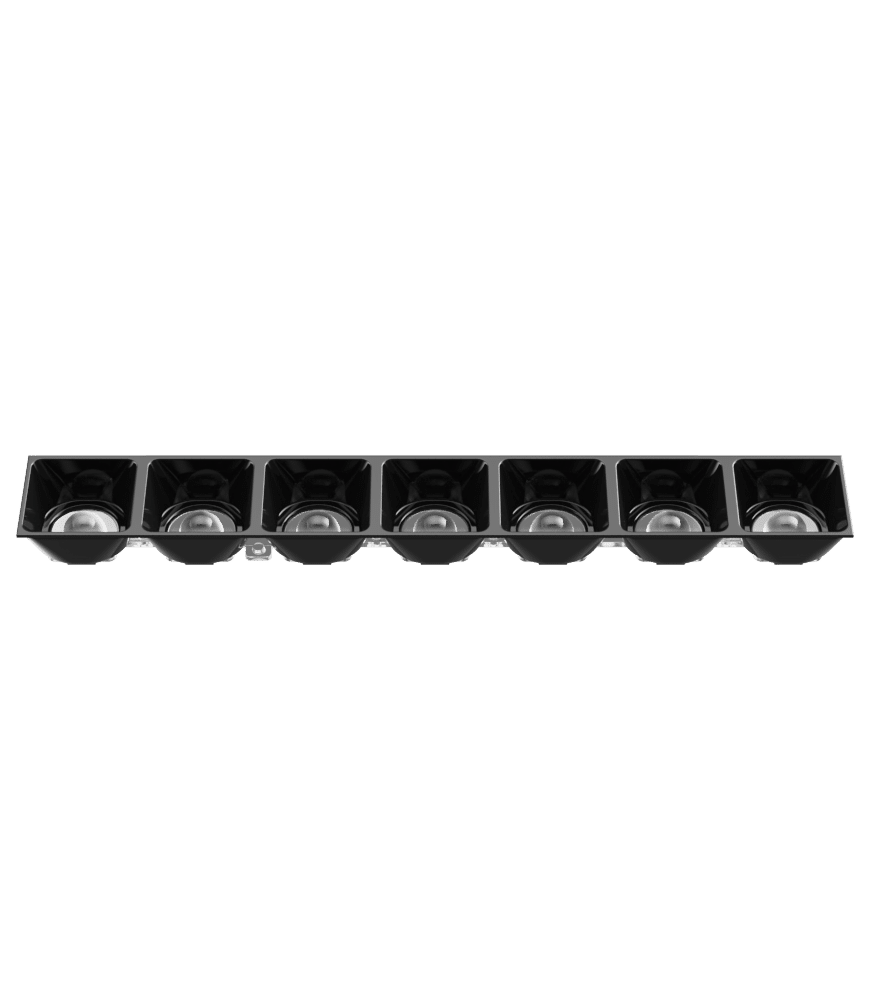 K2POLLUX7X1L102 consists of POLLUX7X1L lens and LVR2POLLUX7X102 black tall louvre (H = 20.25 mm) with glossy finishing. This product is ideal for suspended or recessed installations for Offices, Supermarkets, High bay and Hospitality applications: such as hotels. We recommend to put 2-4pcs of LEDs side-by-side to maximize efficiency and lumen output.