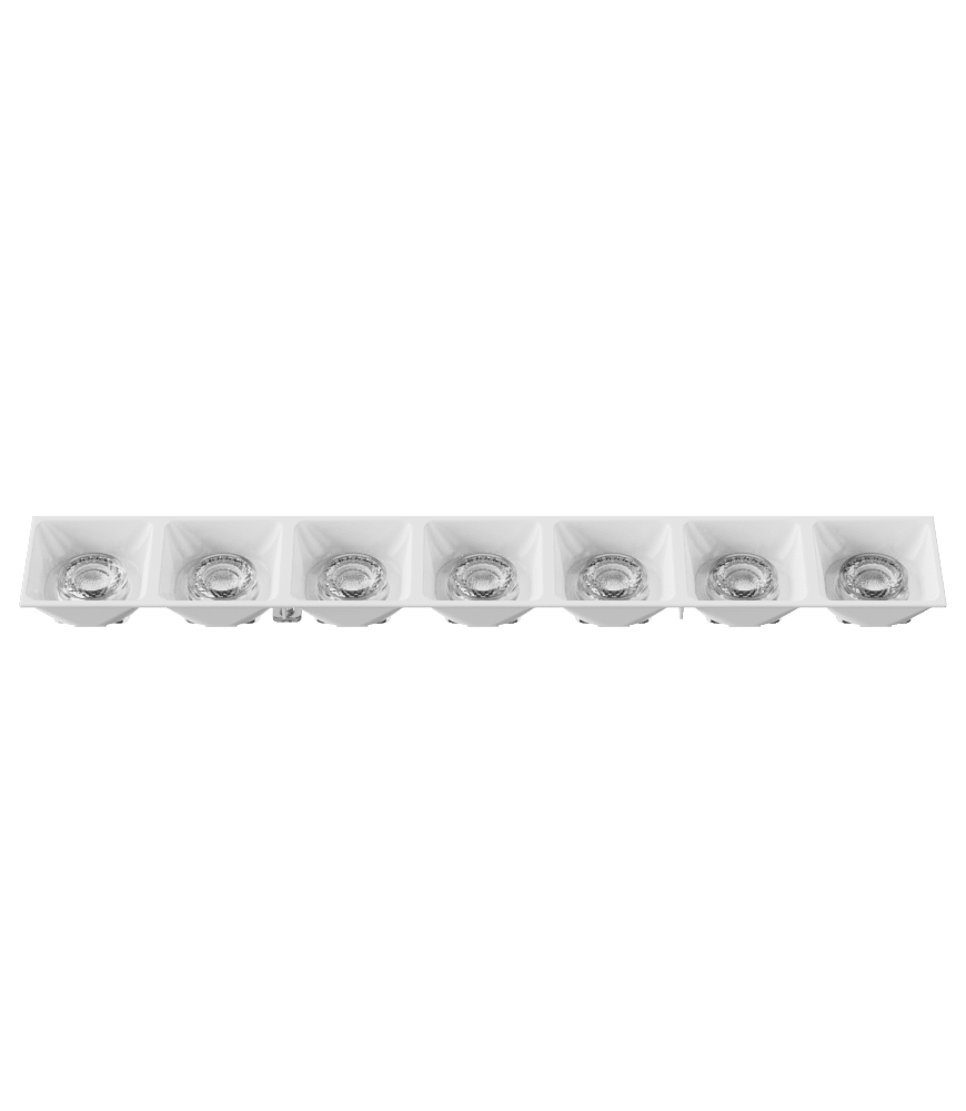 KPOLLUX7X1M101 consists of POLLUX7X1M lens and LVRPOLLUX7X101 white low profile louvre (H = 15.8 mm) with glossy finishing. This product is ideal for applications requiring low UGR and discreet installation such as: Retail, Restaurants and Hotels where medium beam with smooth cut-off is required.