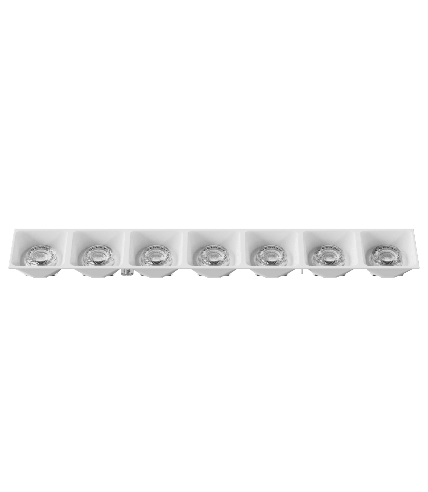 KPOLLUX7X1M101M consists of POLLUX7X1M lens and LVRPOLLUX7X101M white low profile louvre (H = 15.8 mm) with matt finishing. This product is ideal for applications requiring low UGR and discreet installation such as: Retail, Restaurants and Hotels where medium beam with smooth cut-off is required.