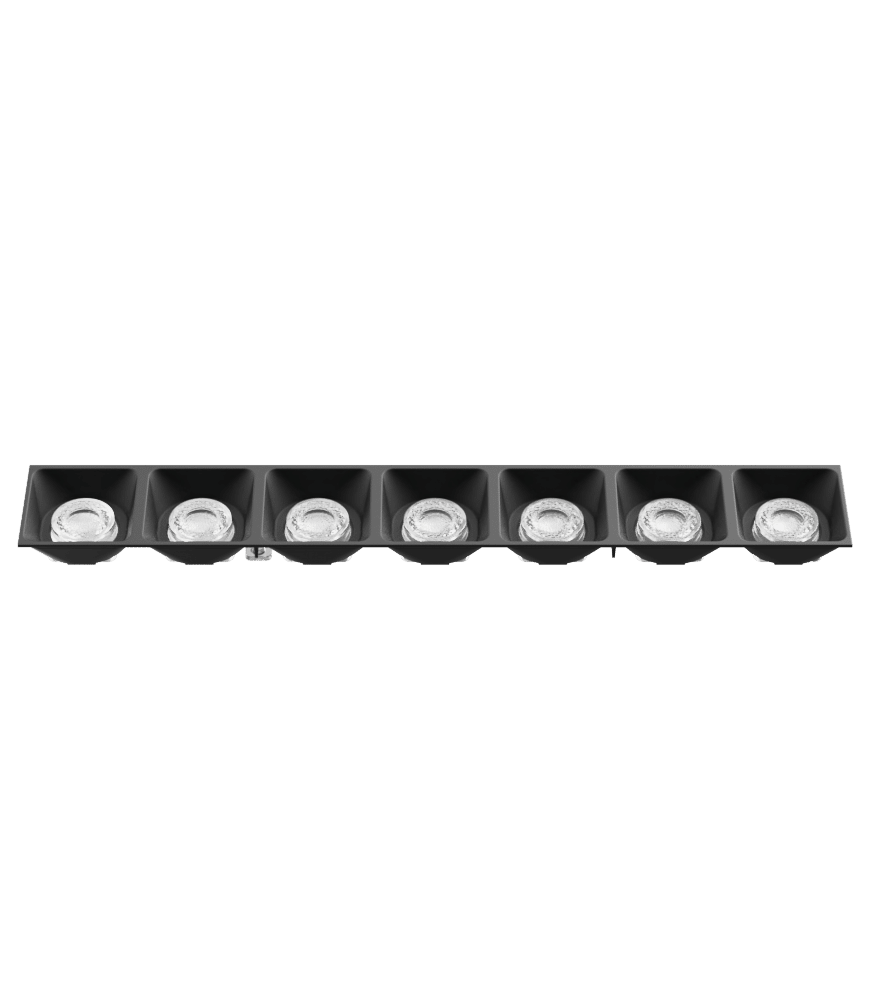 KPOLLUX7X1M102M consists of POLLUX7X1M lens and LVRPOLLUX7X102M black low profile louvre (H = 15.8 mm) with matt finishing. This product is ideal for applications requiring low UGR and discreet installation such as: Retail, Restaurants and Hotels where medium beam with smooth cut-off is required.