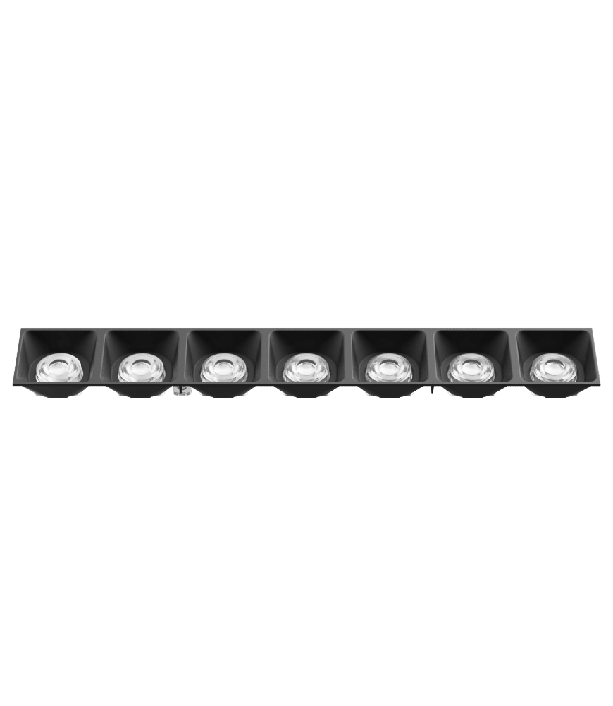 KPOLLUX7X1N102M consists of POLLUX7X1N lens and LVRPOLLUX7X102M black low profile louvre (H = 15.8 mm) with matt finishing. This product is ideal for applications requiring low UGR and discreet installation such as: Accent lighting, spot- and track lighting where narrow beam with smooth cut-off is required.