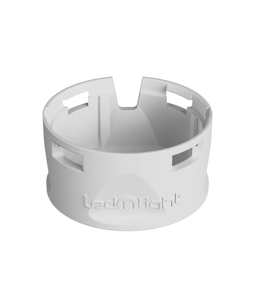 White holder with adhesive for Ø 16 mm collimator. Picture might not represent the accurate form factor of the product. please check 2D drawings. Available in black and without adhesive.
