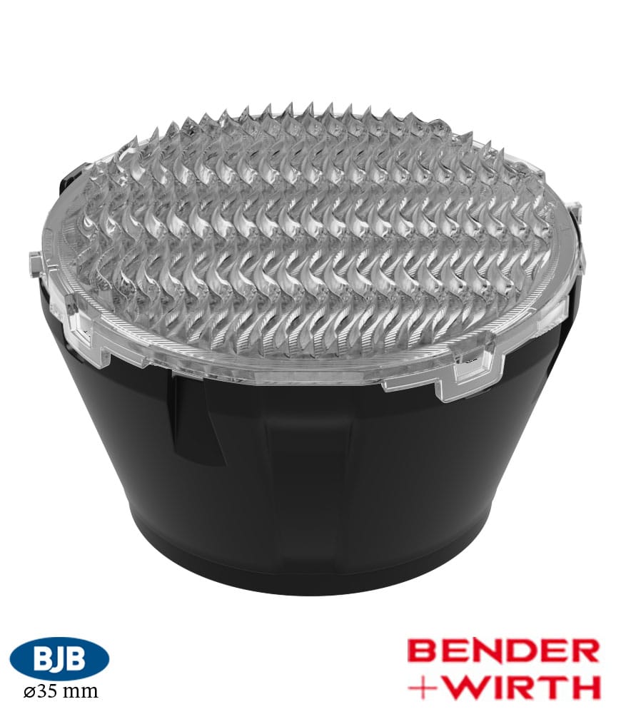 Ø 70mm HADAR70N collimator with HADAR70WA Wall Washer Window + black holder compatible with ⌀50 mm BJB 47.319.xx & Bender+Wirth Hybrid holder Bayonet50 solderless connectors