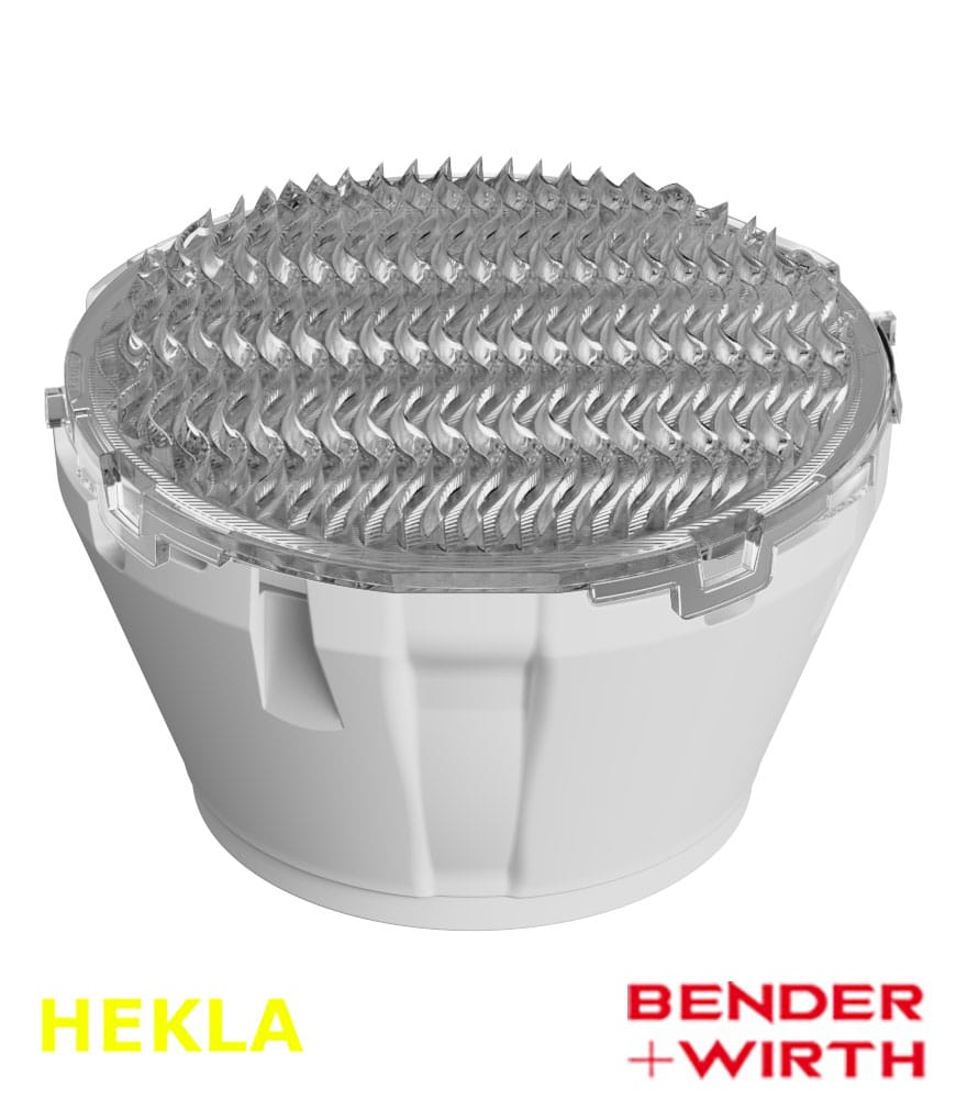 Ø 70mm HADAR70N collimator with HADAR70WA Wall Washer Window + white holder compatible with HEKLA-G2, HEKLA-K, Bender+Wirth HEKLA/HEKLA-XL, HEKLA-G2B solderless connectors.
